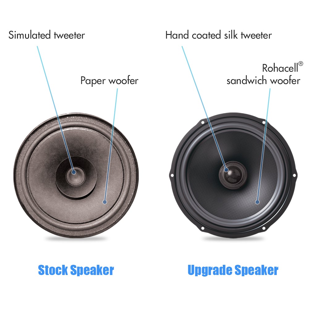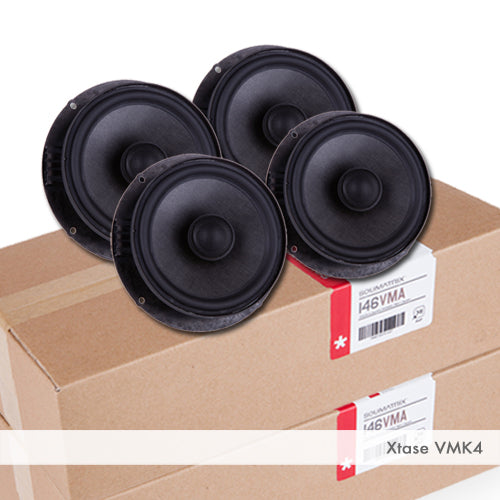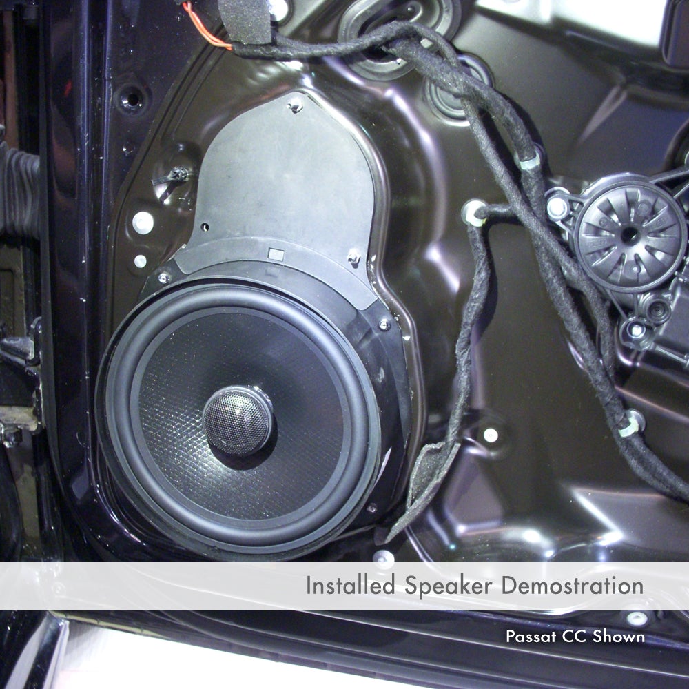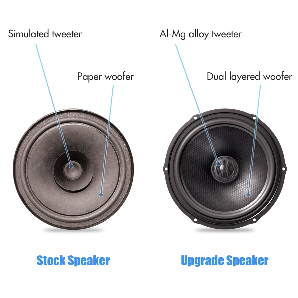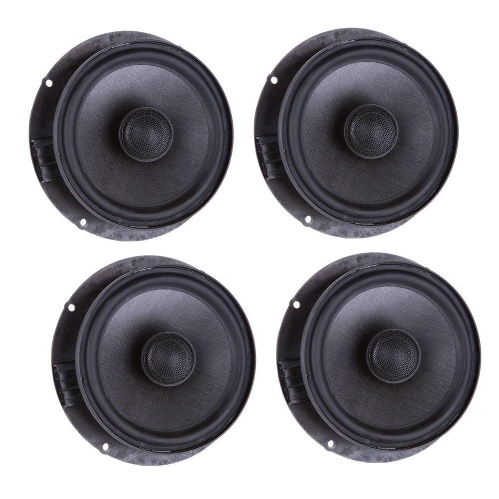 Set of 4, for select models of Volkswagen and Skoda, two coaxial units for the front and two coaxial units for the rear door, including four tweeters and four woofers, a complete eight-speaker upgrade kit to get the full room acoustic sound quality. Parts and instructions are included to aid installation.