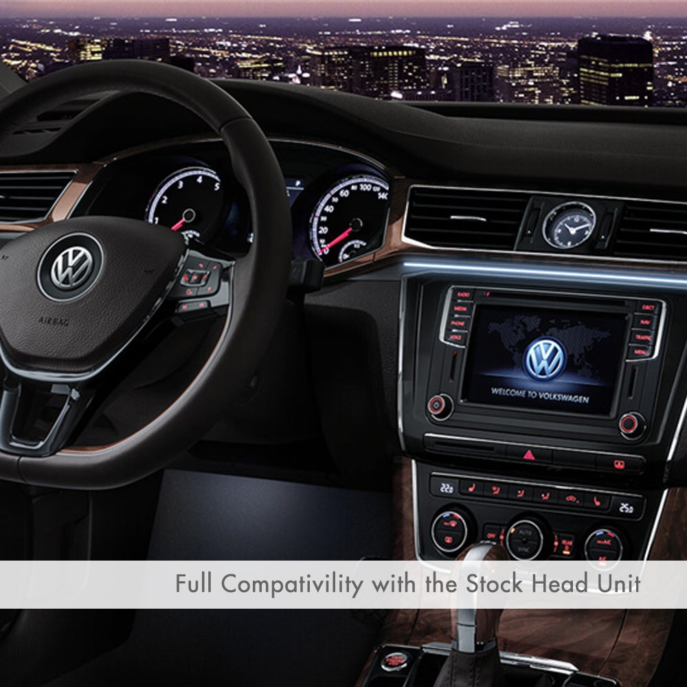 *Plug and play feature may not yet work compatibly with Monsoon, amplifiers from Volkswagen Sound Systems, or Dynaudio, Fender, Beats, Canton systems. You may spot the amplifier unit beneath the front seats. If your car features one of the configurations stated above, please consult us before making a purchase.